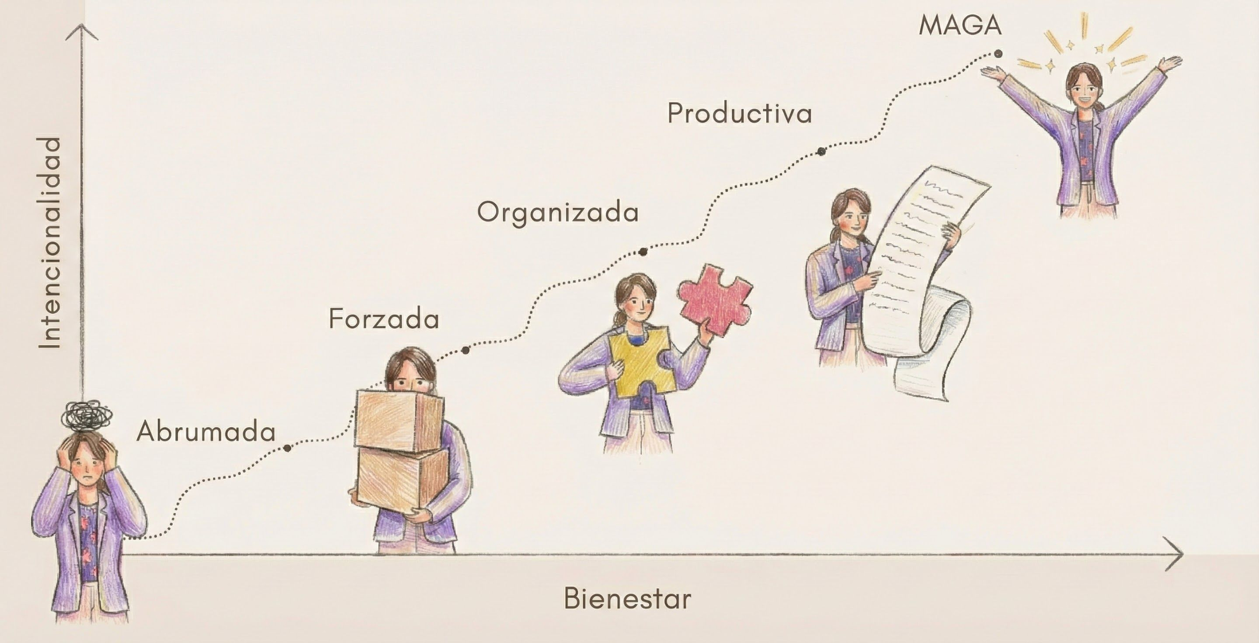 Alineas tu tiempo con lo que de verdad te importa. Ajustas expectativas a tu realidad.